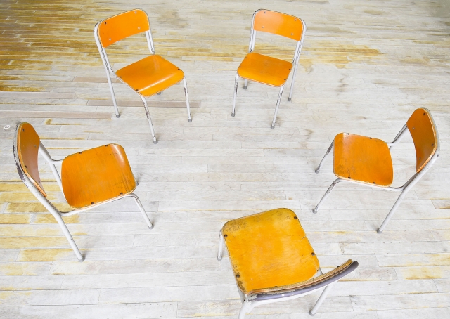 従来の療法では、治療者と患者の間に明確な役割分担があり、治療者が主導権を持って患者に対して指示やアドバイスを行うことが一般的であったのに対し、オープン・ダイアローグでは円形に並んだ椅子に座った参加者全員が対等な立場で自由な対話を行います。
